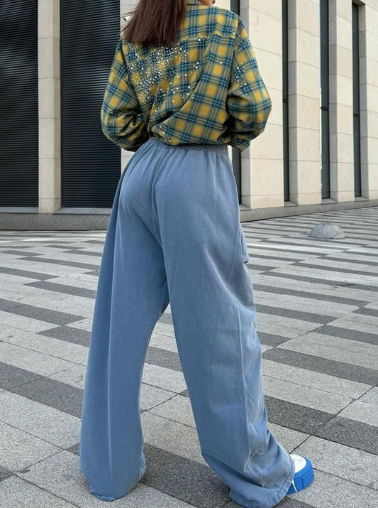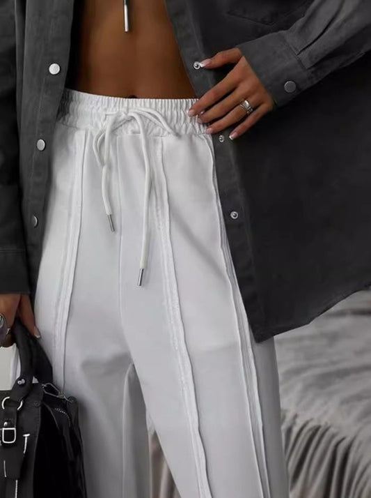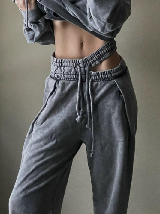 Retro Double Waist Drawstring Hollow Casual Straight Sweatpants