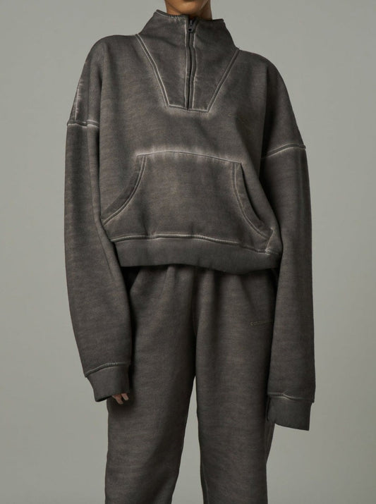 Vintage Washed Half-Zip Long-Sleeved Pullover Sweatpants Set