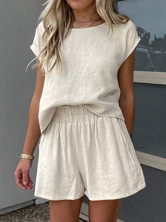2 Piece Casual Set Linen Shorts Sleeveless Top Vest