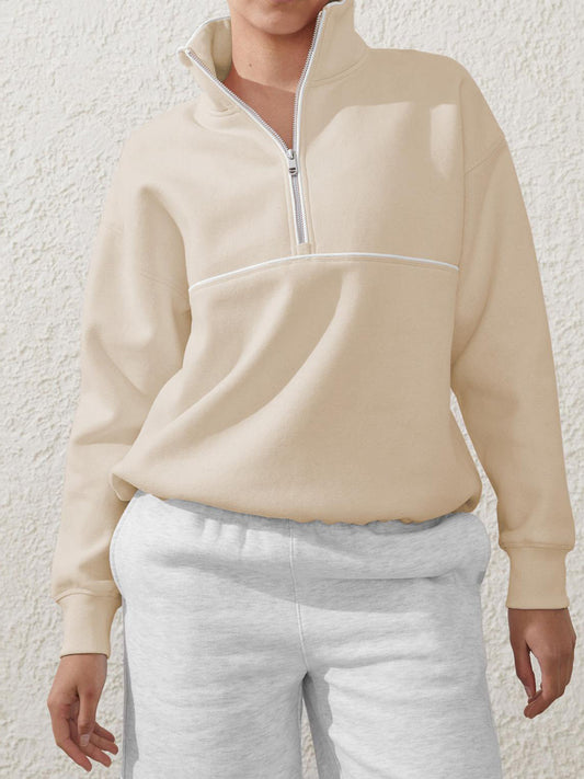 Women Zipper V-neck Long Sleeve Sweatshirt