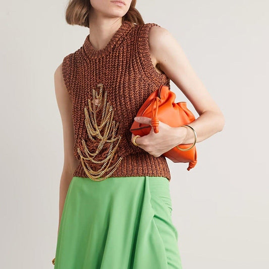 Round Neck Sleeveless Thick Chain Hollow Vest