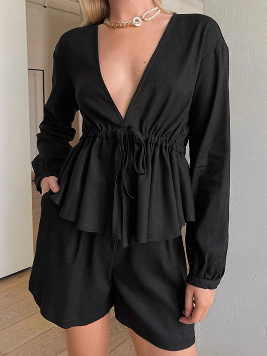 Black and White Contrast Shirt and Shorts Two-piece Set
