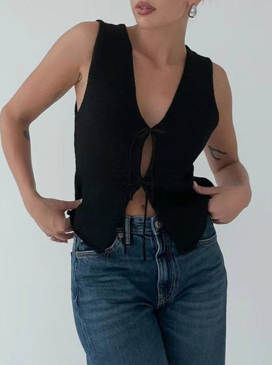 Sleeveless Fashionable Comfortable Lace-up Woven Vest