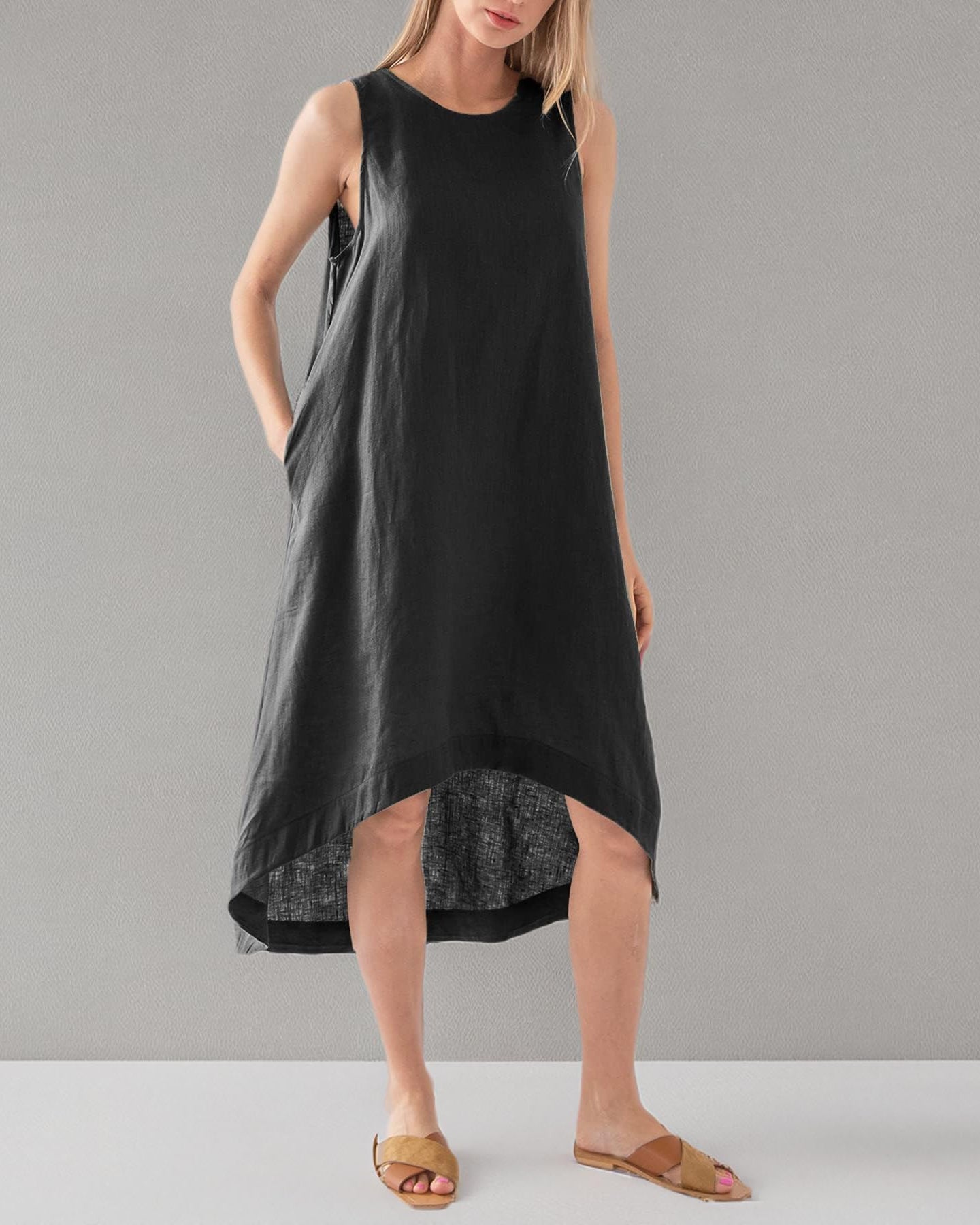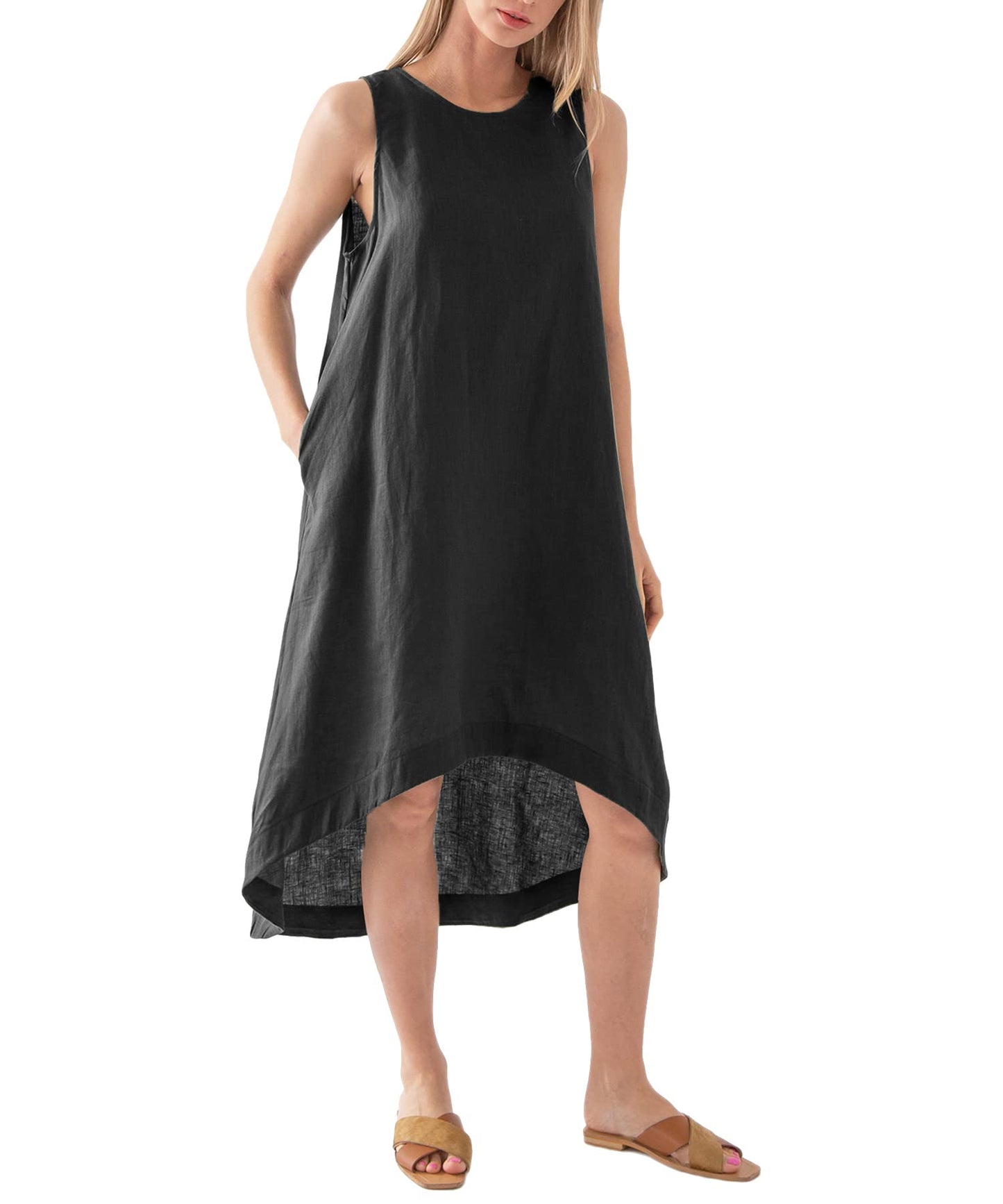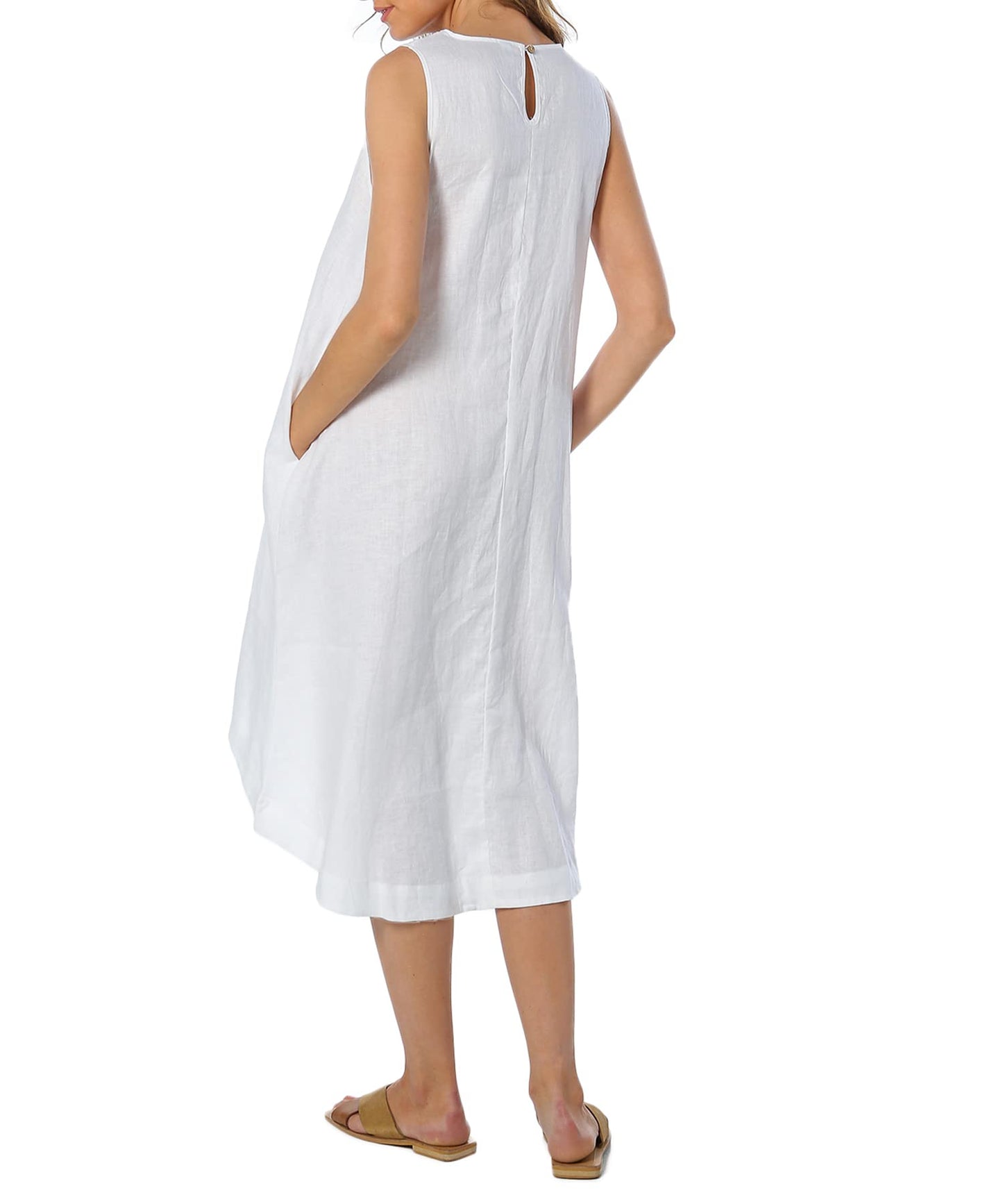 100% Linen Flowy Midi Dress with Pockets