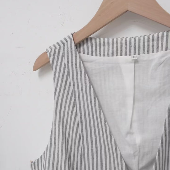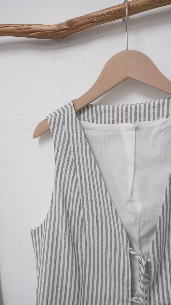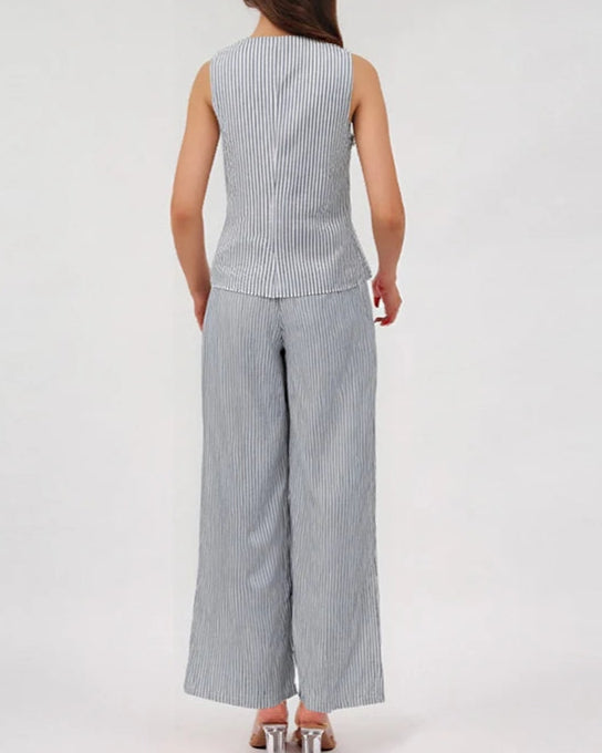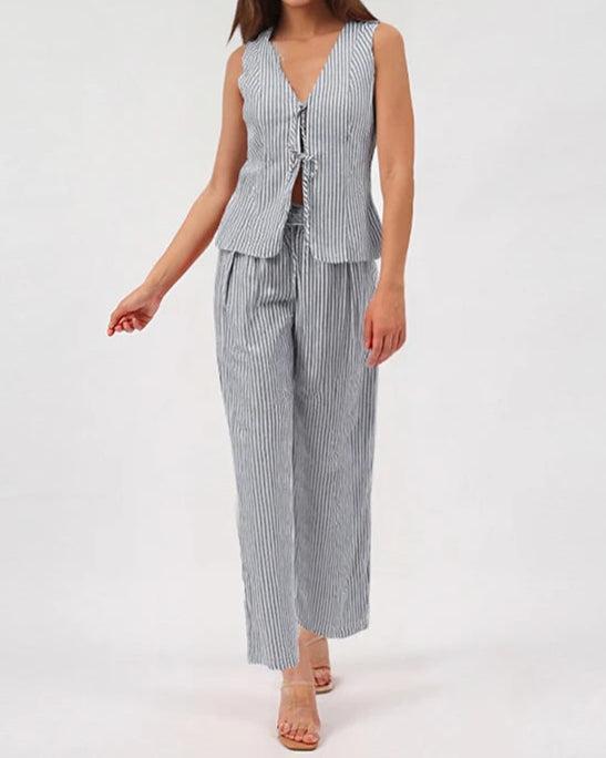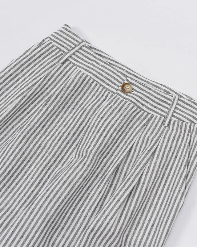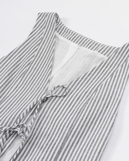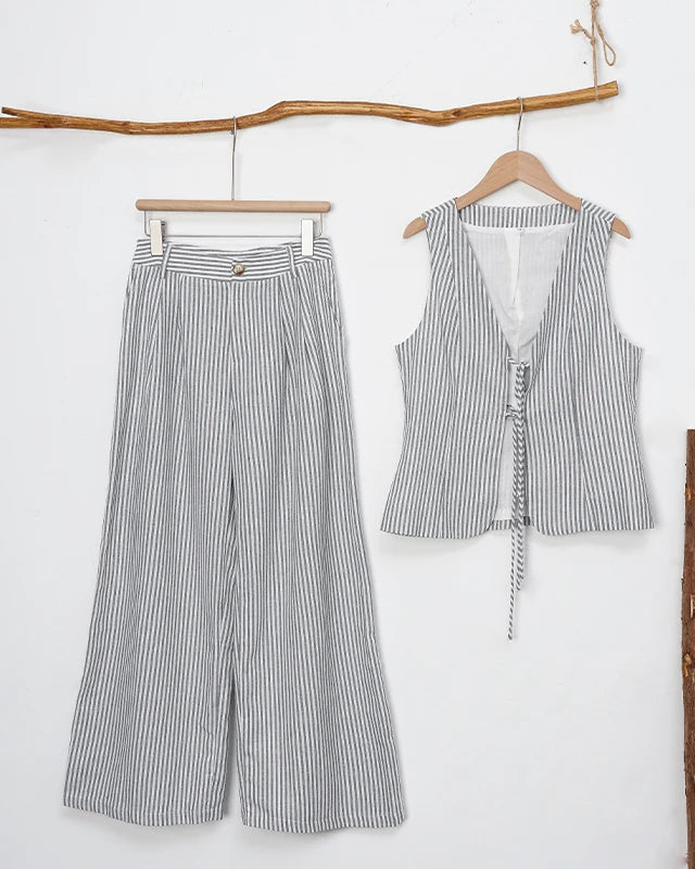 Cotton Linen Striped Women's Two Piece Set