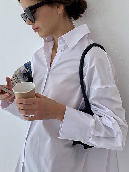 Women Pleated Lapel Puff Sleeve Shirt Dress