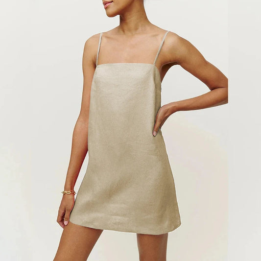 Cotton Linen Sexy Sleeveless Back Bandage Lace Up Dress For Women