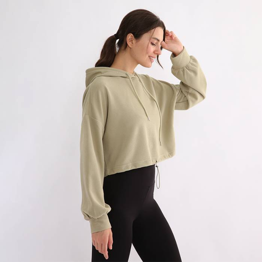 Womens Waffle Knit Drop Shoulder Cropped Hoodie
