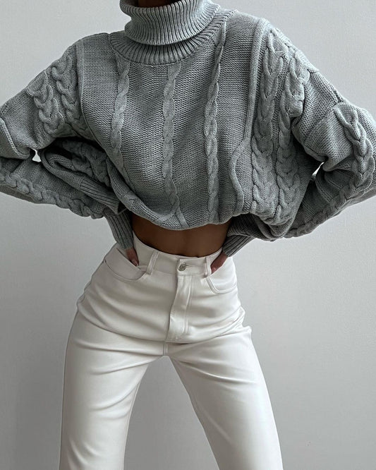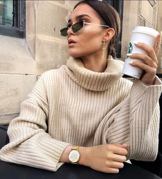 Long-sleeved Loose Solid Color Turtleneck Sweater