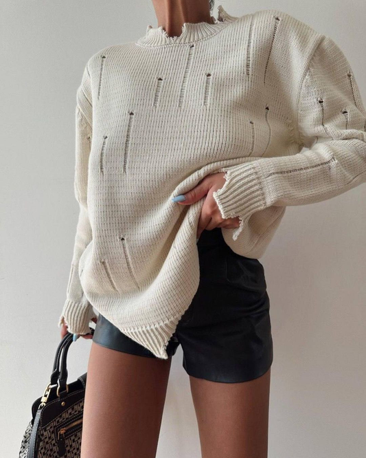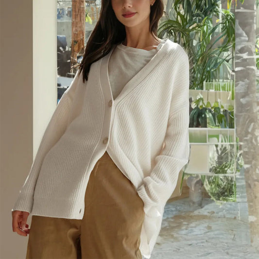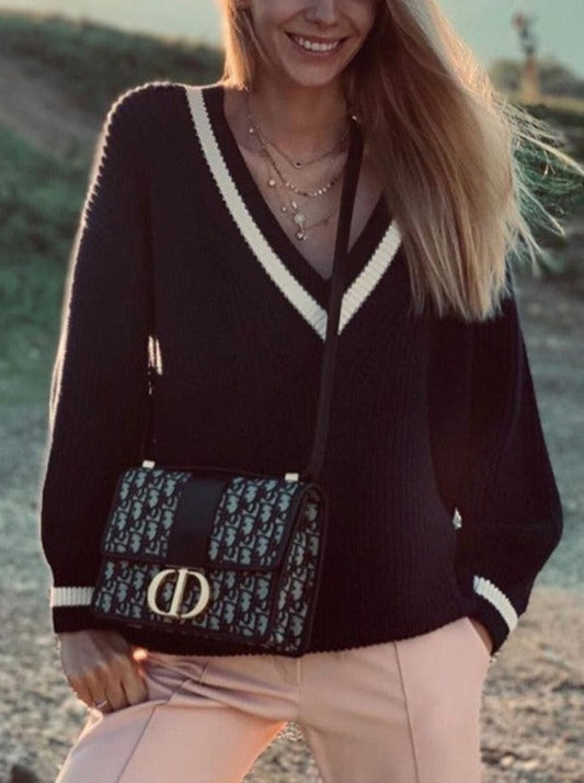 V-neck Knitted Fashionable Outerwear Loose Sweater