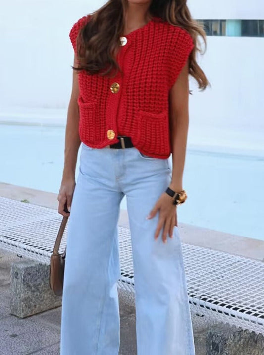 Casual All-match Single-breasted Cardigan Sweater Vest
